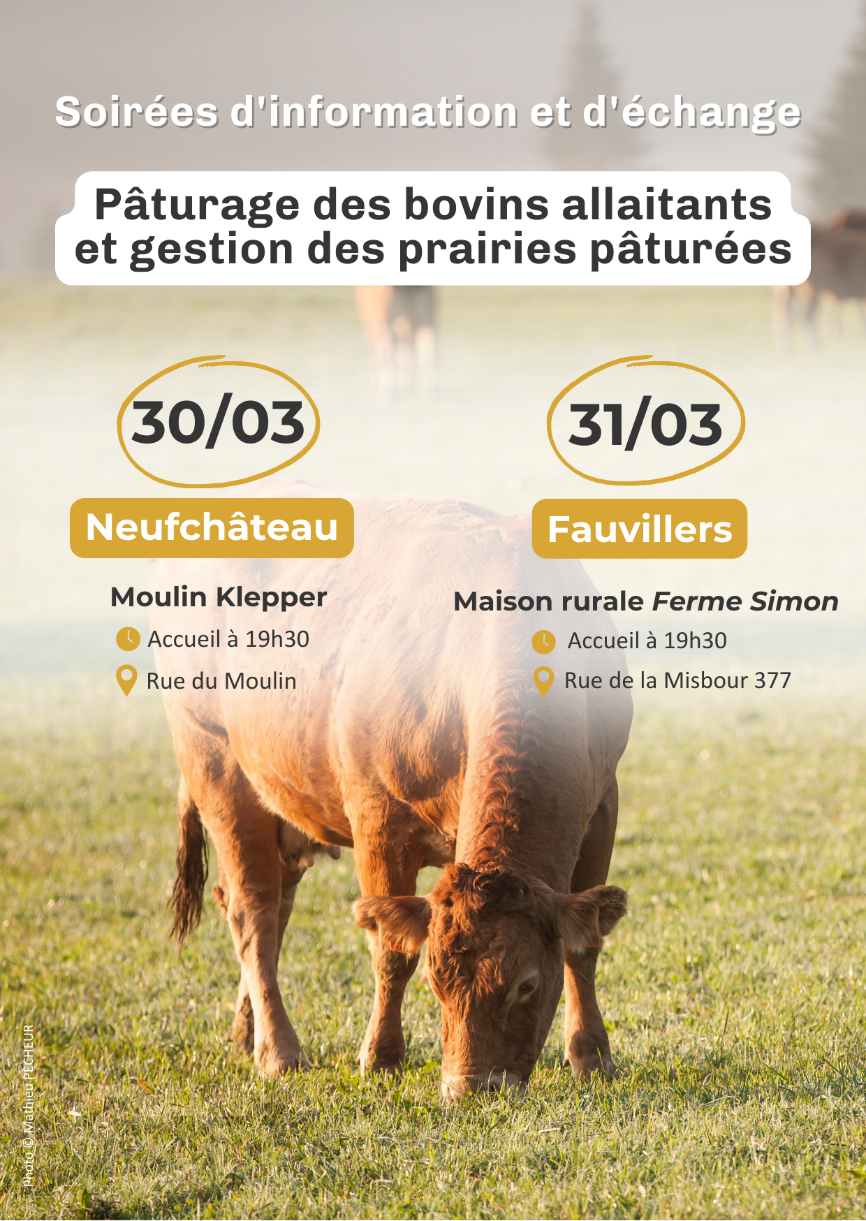 Le lundi 23 mars 2026 en soirée aura lieu à salle de Ligneuville (Malmedy) une formation phytolicence avec comme thème "Gestion préventive, curative et mécanique des adventices en maïs et prairie". Fourrages Mieux et le CPL Vegemar (service de la Province de Liège) seront les intervenants de la soirée. Plus d'infos à venir.
